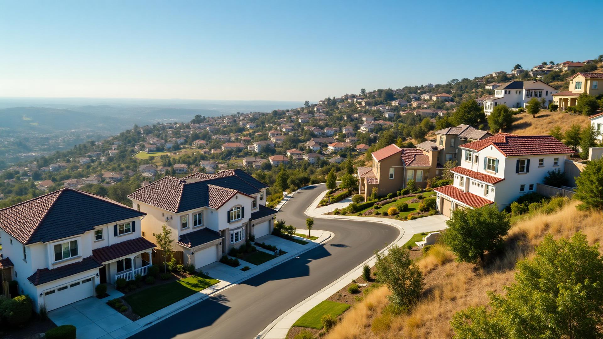 Housing Expertise: Hillside homes with Mediterranean and contemporary designs, many featuring stucco exteriors and tile roofs typical of Southern California.